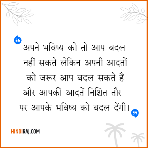 - भविष्य को तो आप बदल नहीं सकते लेकिन अपनी आदतों को जरूर आप बदल सकते हैं और आपकी आदतें निश्चित तौर पर आपके भविष्य को बदल देंगी।
