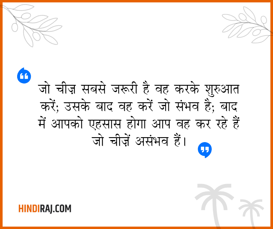 3. जो चीज़ सबसे जरूरी है वह करके शुरुआत करें; उसके बाद वह करें जो संभव है; बाद में आपको एहसास होगा आप वह कर रहे हैं जो चीज़ें असंभव हैं।