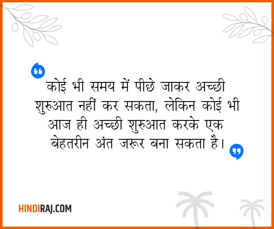 6. कोई भी समय में पीछे जाकर अच्छी शुरुआत नहीं कर सकता, लेकिन कोई भी आज ही अच्छी शुरुआत करके एक बेहतरीन अंत जरूर बना सकता है।