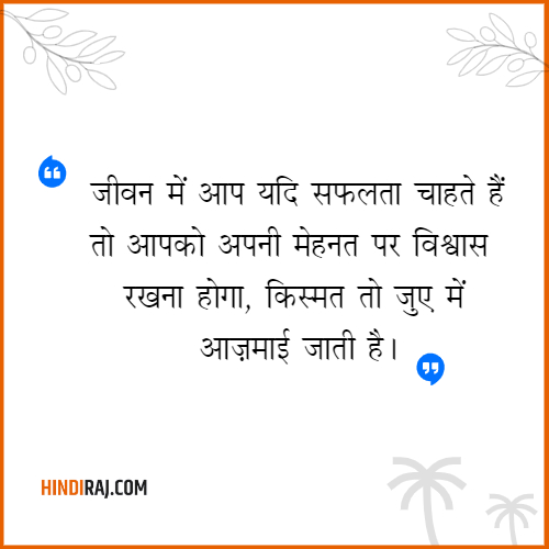 17. जीवन में आप यदि सफलता चाहते हैं तो आपको अपनी मेहनत पर विश्वास रखना होगा, किस्मत तो जुए में आज़माई जाती है।