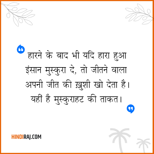 23. हारने के बाद भी यदि हारा हुआ इंसान मुस्कुरा दे, तो जीतने वाला अपनी जीत की ख़ुशी खो देता है। यहीं है मुस्कुराहट की ताकत।
