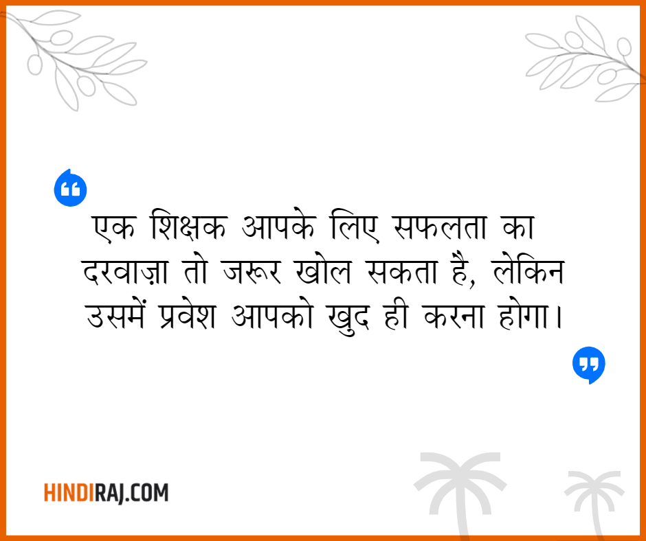 10. एक शिक्षक आपके लिए सफलता का दरवाज़ा तो जरूर खोल सकता है, लेकिन उसमें प्रवेश आपको खुद ही करना होगा।
