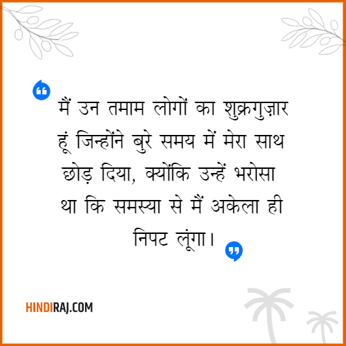 19. मैं उन तमाम लोगों का शुक्रगुज़ार हूं जिन्होंने बुरे समय में मेरा साथ छोड़ दिया, क्योंकि उन्हें भरोसा था कि समस्या से मैं अकेला ही निपट लूंगा।