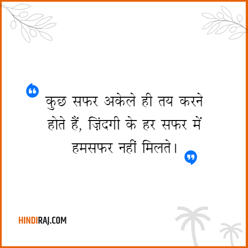 18. कुछ सफर अकेले ही तय करने होते हैं, ज़िंदगी के हर सफर में हमसफर नहीं मिलते।