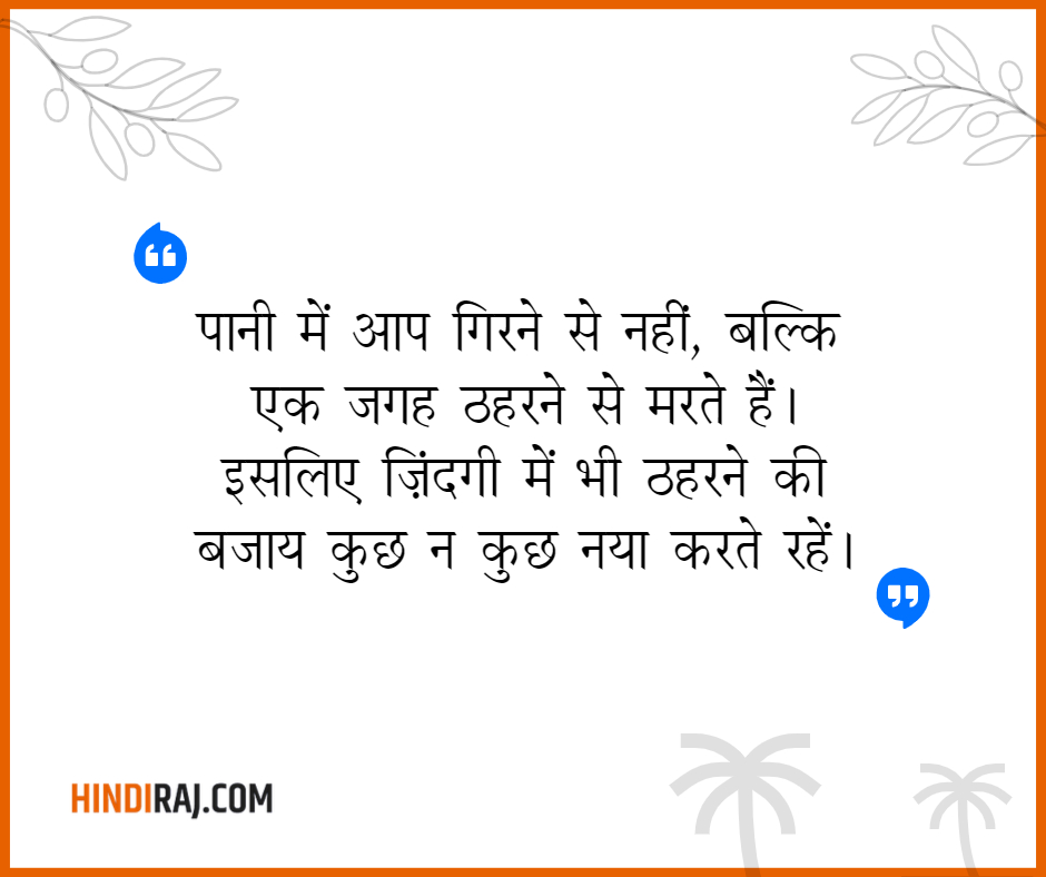 7. पानी में आप गिरने से नहीं, बल्कि एक जगह ठहरने से मरते हैं। इसलिए ज़िंदगी में भी ठहरने की बजाय कुछ न कुछ नया करते रहें।