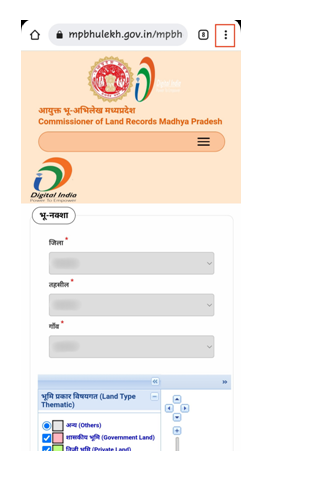 - मोबाइल में क्रोम पर नक्शा मिल जाने के बाद दाएं साइड पर दिए गए तीन बिंदुओं पर क्लिक करना है।