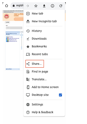 - बिंदुओं पर क्लिक करने के बाद शेयर ऑप्शन पर क्लिक करे।