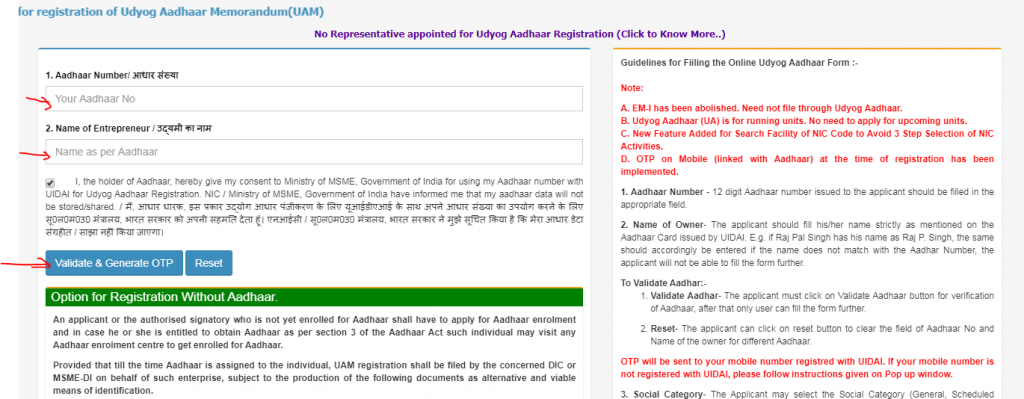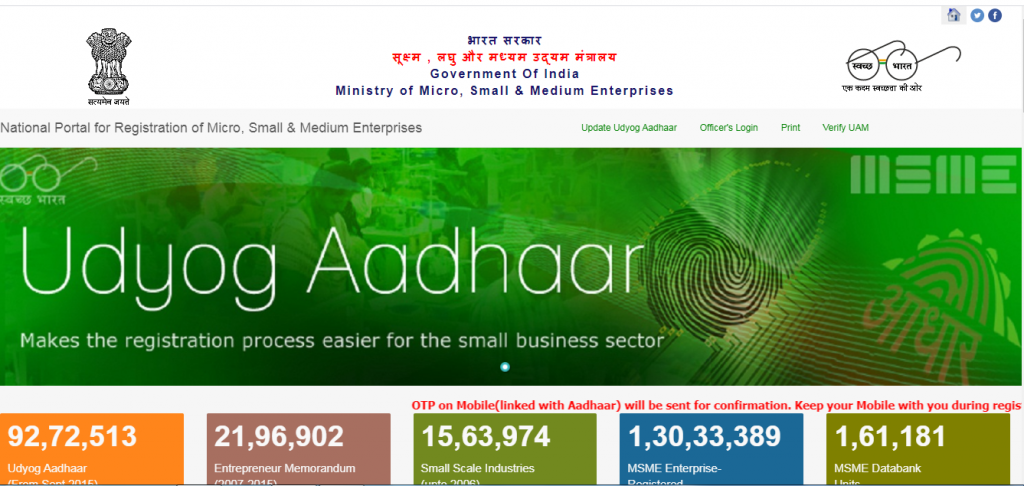 • सर्वप्रथम आपको पंजीकरण हेतु भारत सरकार द्वारा जारी पोर्टल http://udyogaadhaar.gov.in/UA/UAM_Registration.aspx पर जाना होगा अब दिए गए निर्देशों का पालन करे, उसमे सम्बंधित जानकारी आधार संख्या, मालिक का नाम भरने के उपरांत आवेदन सब्मिट कर दे |