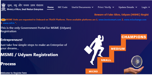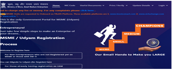 - सबसे पहले आपको सूक्ष्म, लघु और मध्यम उद्यम मंत्रालय की आधिकारिक वेबसाइट https://udyamregistration.gov.in पर जाये |