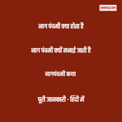 जिससे जीवन की सभी समस्याओं का निवारण हो जाता है | हिन्दू धर्म में इस दिन का अत्याधिक महत्व माना जाता है | इसलिए यदि आपको नाग पंचमी के इस पर्व के विषय में अधिक जानकारी नहीं है और आप इसके विषय में जानने की इच्छा रखते है, तो यहाँ पर आपको नाग पंचमी क्या होता है, नाग पंचमी क्यों मनाई जाती है, नाग पंचमी के बारे में जानकारी प्रदान की जा रही है |