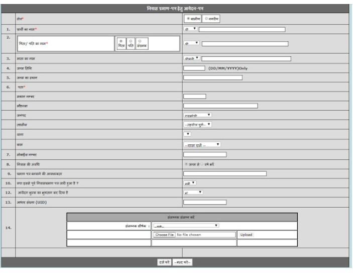 - लॉगिन करने के बाद आपको निवास प्रमाण पत्र आवेदन का विकल्प प्राप्त होगा आपको इस पर क्लिक करना होगा |