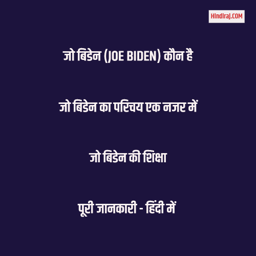 आपको यहाँ जो बिडेन (Joe Biden) की बायोग्राफी के विषय में जानकारी उपलब्ध करायी गई है | अब आशा है आपको जानकारी पसंद आयी होगी | यदि आप इससे संतुष्ट है, या फिर अन्य कोई जानकारी प्राप्त करना चाहते है तो कमेंट करके पूंछ सकते है, और अपना सुझाव प्रकट कर सकते है | आपकी प्रतिक्रिया का जल्द ही जवाब देने का प्रयास किया जायेगा | अधिक जानकारी के लिए hindiraj.com पोर्टल पर विजिट करते रहे |