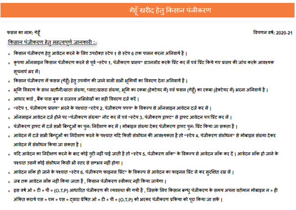 यूपी गेहूं खरीद किसान पंजीकरण से सम्बंधित मुख्य बिंदु (Main Points Of Wheat Purchase Online Farmer Registration)