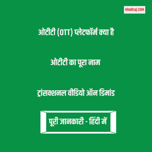 यहाँ आपको ओटीटी (OTT) प्लेटफॉर्म के बारे में जानकारी दी गई है | यदि आपको इससे सम्बंधित अन्य जानकारी प्राप्त करना चाहते है तो आप www.hindiraj.com पर विजिट कर सकते है | इसके साथ अपने विचार या सुझाव अथवा प्रश्न कमेंट बॉक्स के माध्यम से पूंछ सकते है | हम आपके सुझावों का हमे इन्तजार है |