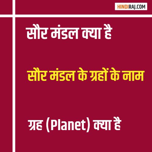 Saurmandal Kise Kahate Hain : सूर्य और खगोलीय पिंड से मिलकर बने समूह को सौर मंडल कहा जाता है। यह सभी ग्रह (Planet) गुरुत्वाकर्षण के द्वारा एक दूसरे के साथ जुड़े होते हैं। खगोलीय वस्तुएं जो ब्रह्माण्ड में किसी तारे के आस पास परिक्रमा करती हैं उन्हें ग्रह मंडल कहते हैं जोकि दूसरे तारे ना हों जैसे कि धूमकेतु, खगोलीय धूल, और प्राकृतिक उपग्रह आदि।