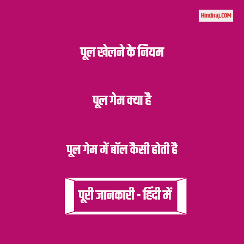 यहाँ आपको पूल खेलने के नियम (Pool Game Rules ) के बारे में जानकारी दी गई है | यदि आपको इससे सम्बंधित अन्य जानकारी प्राप्त करना चाहते है तो आप www.hindiraj.com पर विजिट कर सकते है | इसके साथ अपने विचार या सुझाव अथवा प्रश्न कमेंट बॉक्स के माध्यम से पूंछ सकते है | हम आपके सुझावों का हमे इन्तजार है |