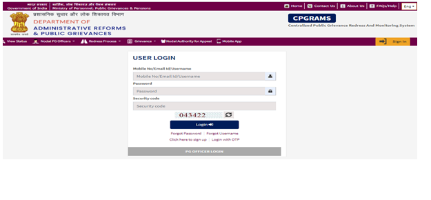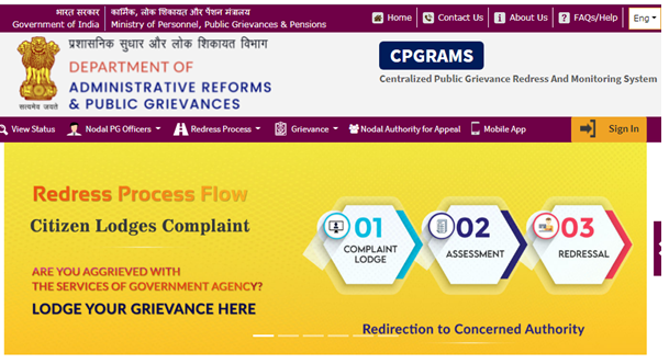 सीपीजीआरएएमएस (CPGRAMS) केंद्रीयकृत लोक शिकायत निवारण और निगरानी प्रणाली (CPGRAMS) राष्ट्रीय सूचना विज्ञान केंद्र (NIC) द्वारा लोक शिकायत निदेशालय (Directorate of Public Grievances-DPG) और प्रशासनिक सुधार और लोक शिकायत विभाग (DARPG) के सहयोग से विकसित किया गया है | सीपीजीआरएएमएस वेब टेक्नोलॉजी पर आधारित पोर्टल है | इस पोर्टल पर आप किसी भी समय (24×7) और किसी भी स्थान से अपनी शिकायत दर्ज कर सकते है |