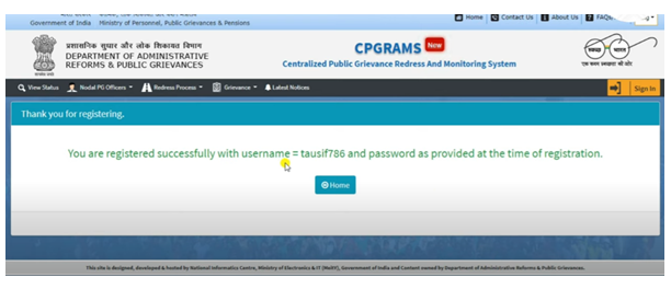 - सबमिट करते ही आपको एक मेसेज शो होगा, जिसमें आपका शिकायत नंबर शो होगा | इस नंबर की सहायता से आप अपनी शिकायत के स्टेटस की जाँच कर सकते है |