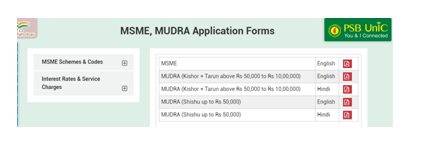 - जैसे ही आप क्लिक करेंगे आपकी स्क्रीन पर एक पेज प्रदर्शित हो जाएगा। जिसमें से आपको MSME, MUDRA Application Forms को डाउनलोड कर लेना होगा।