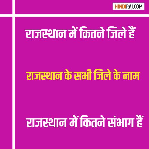 नीचे आपके समक्ष हमने राजस्थान के सभी जिलों के नाम प्रस्तुत किए हैं ताकि आपको यह इंफॉर्मेशन रहे कि राजस्थान में कुल कितने जिले हैं और उन सभी जिलों के नाम क्या है।