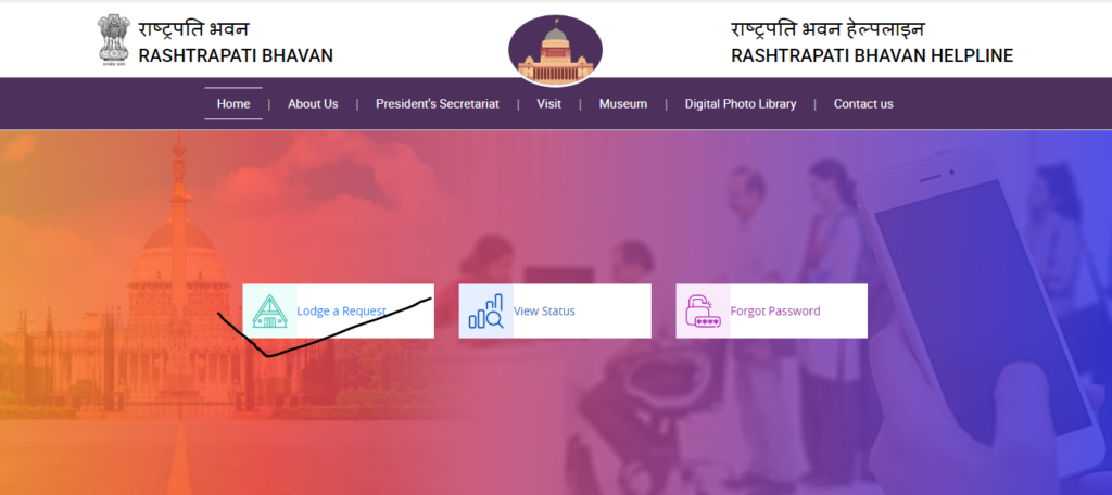 - वेबसाइट के होम पेज पर आपको Lodge a Request( अनुरोध दर्ज करें) पर क्लिक करना है।