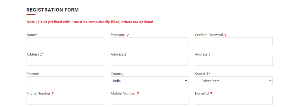 - इस फॉर्म में आपको कुछ महत्वपूर्ण जानकारियां जैसे की पूरा नाम, पासवर्ड, सही सही पूरा पता, पिनकोड, देश का नाम, राज्य का नाम, टेलीफोन, मोबाइल नंबर और ईमेल एड्रेस भरना है।