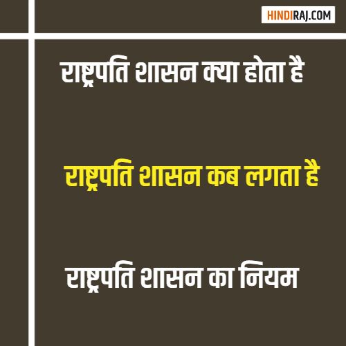 देश अथवा राज्य में राष्ट्रपति शासन भारत के संविधान के अनुसार लगाया जाता है | राष्ट्रपति शासन सिर्फ दो आधार पर ही लगाया जाता है, जो भारतीय संविधान के अनुच्छेद 355 और 365 के अंतर्गत आता है। किसी राज्य में राष्ट्रपति शासन उस समय लगाया जाता है, जब उस राज्य की सरकार को बर्खास्त कर दिया जाता है, और राज्य का शासन केंद्र सरकार के आधीन हो जाता है | राष्ट्रपति शासन राज्यपाल के अनुरोध पर लगाया जाता है |