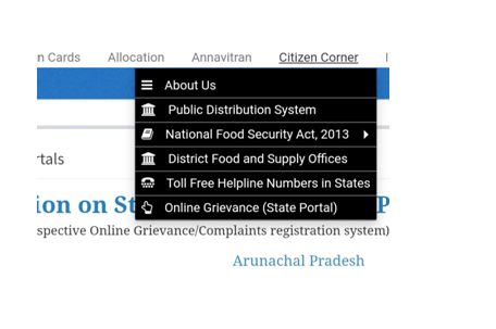 - इन राज्यों में जब उत्तर प्रदेश का हम चयन करते हैं तो आप इस राज्य की खाद्य एवं रसद विभाग की अधिकारित वेबसाइट पर पहुंच जाते हैं। इसमें आपको शिकायत दर्ज करें का विकल्प दिख रहा होगा, आपको उसपर क्लिक करना है।