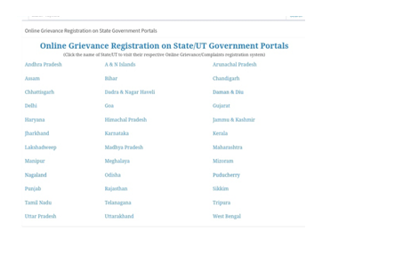 - Online Grievance पर क्लिक करते ही आपके सामने एक नया पेज खुल जाएगा जिसमें हमारे देश एक सभी राज्यों के नाम लिखे होंगे। इनमें से उस राज्य का चयन करें जिसमें आप रहते हैं।