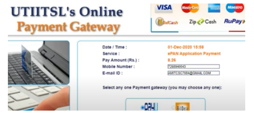 - ओटीपी दर्ज करनें के पश्चात डुप्लीकेट पैन कार्ड हेतु शुल्क का भुगतान करे |