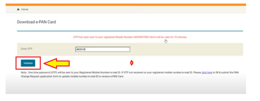 - अब आपके पंजीकृत मोबाइल नम्बर पर ओटीपी सेंड करनें का आप्शन मिलेगा, इस पर क्लिक कर वैलीडीएट ओटीपी पर क्लिक करे |