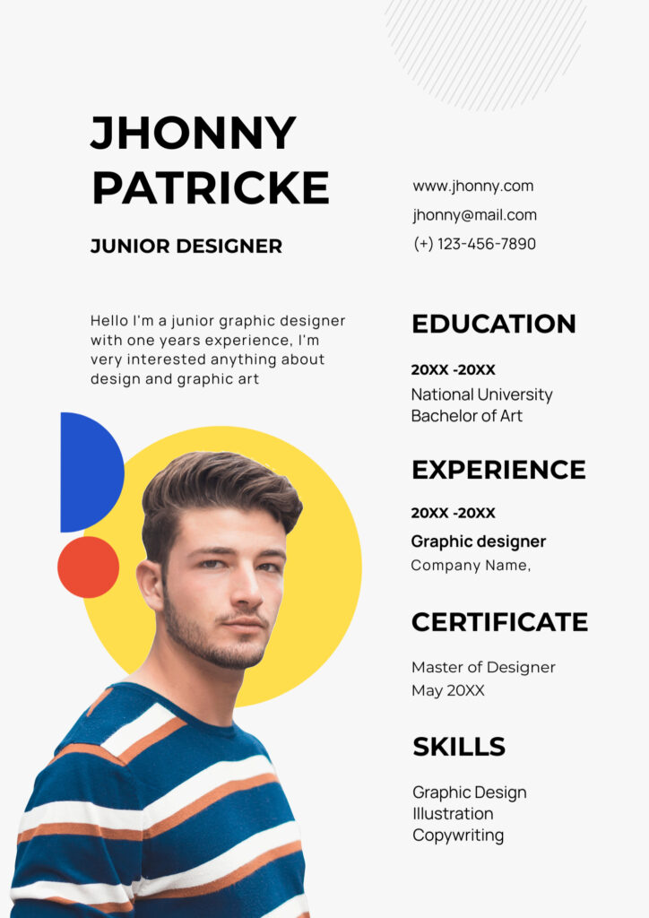 आप अपने रिज्यूम में अपनी शिक्षा, प्रोफेशनल अनुभव व उपलब्धियों के विषय में लिख सकते है |