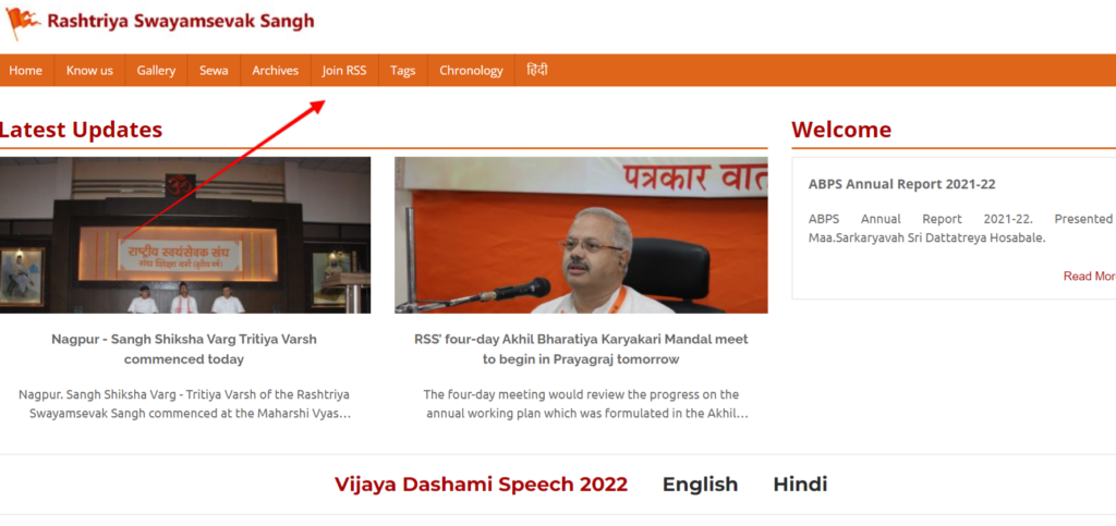 - सबसे पहले आपको RSS की ऑफिसियल वेबसाइट, https://www.rss.org/ पर विजिट करना होता है |