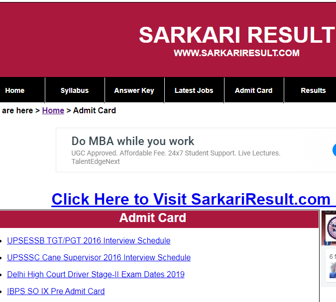 Sarkariresult.com पर एडमिट कार्ड (Admit Card) डाउनलोड करे