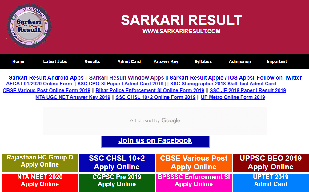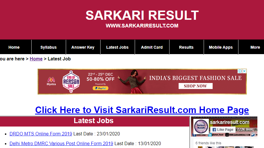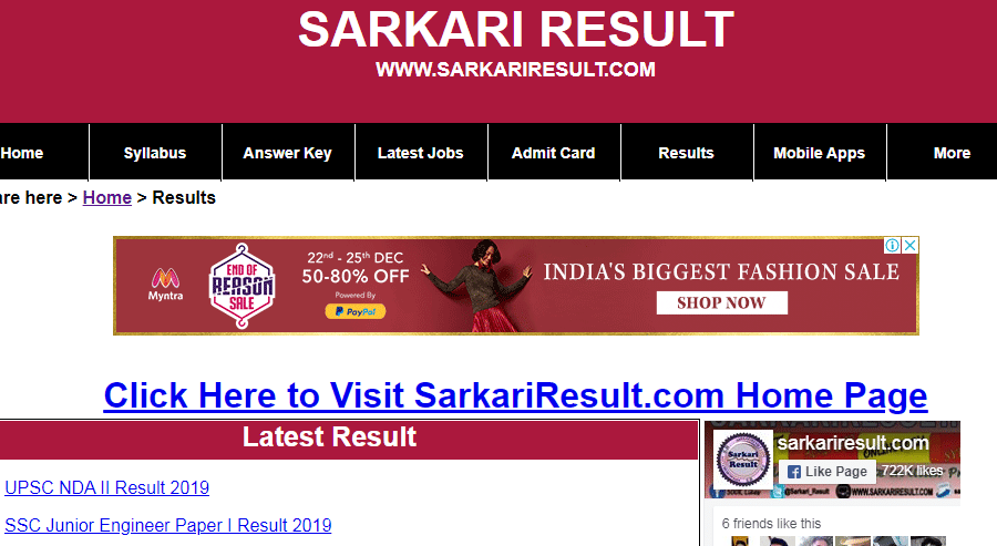Sarkariresult.com पर रिजल्ट (Result) की जानकारी