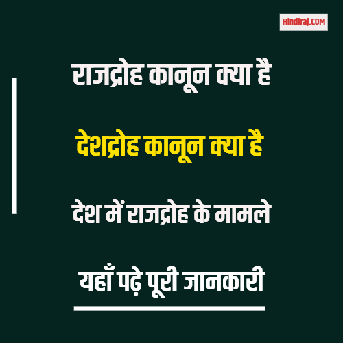 इसी तरह देशद्रोह भी एक कानून है, जिसमे लोगो को कुछ साल या उम्रकैद की सजा सुनाने का प्रावधान है | इसलिये यदि आपको राजद्रोह कानून (Sedition Law), इतिहास, राजद्रोह और देशद्रोह में क्या अंतर है ? इस बारे में जानकारी प्राप्त करनी है, तो यहाँ पर आपको इस बारे पूरी जानकारी दी जा रही है |
