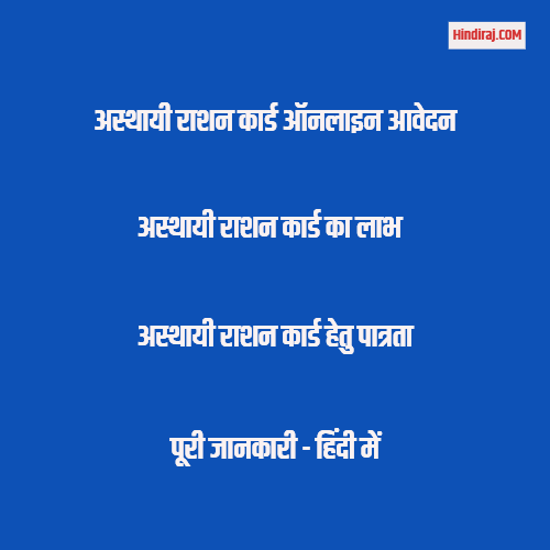 यहाँ आपको अस्थायी राशन कार्ड ऑनलाइन आवेदन के बारे में जानकारी प्रदान की गई | यदि आप इस जानकारी से संतुष्ट है, या फिर इससे समबन्धित अन्य जानकारी प्राप्त करना चाहते है तो कमेंट करे और अपना सुझाव दे सकते है, आपकी प्रतिक्रिया का जल्द ही निवारण किया जायेगा | अधिक जानकारी के लिए hindiraj.com पोर्टल पर विजिट करते रहे|