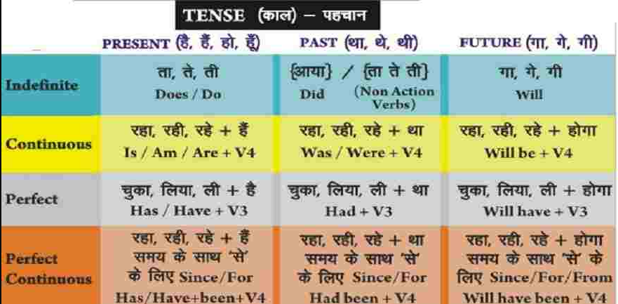 Tense Formula Chart with Examples in Hindi (टेंस चार्ट)