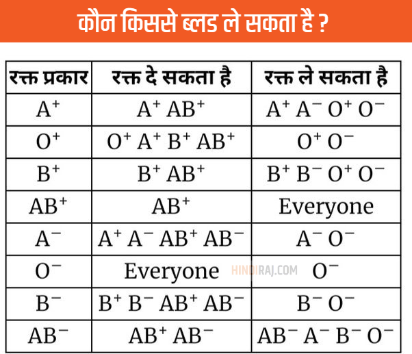 ब्लड ग्रुप चार्ट (Blood Group Chart in Hindi)