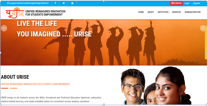 यू-राइज राज्य सरकार का एकीकृत पोर्टल है, इस पोर्टल के द्वारा राज्य के छात्र-छात्रों को करियरकाऊंसलिंग, रोजगार तथा सीखने में मार्गदर्शक के रूप में सहायता प्रदान करेगा | इस पोर्टल के माध्यम सेछात्रो को व्यवसायिक तथा तकनीकि शिक्षा प्राप्त हो सकेगी तथा इसके अंतर्गत प्रत्येक छात्र से सम्बंधित सम्पूर्ण जानकारी उपलब्ध रहेगी, छात्र के द्वारा किस संस्थान में प्रवेश लिया गया है तथा कितना शुल्क लगेगा, शिक्षण तथा प्रशिक्षण सम्बन्धी जानकारी, प्रयोग एवं परीक्षा सम्बन्धी जानकारी के साथ- साथ छात्र को रोजगार प्राप्त होने तक की सम्पूर्ण जानकारी दर्ज रहेगी |