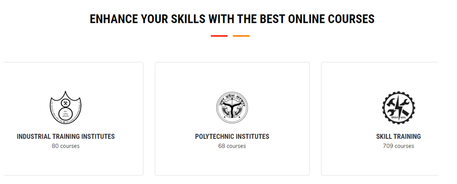 - इसके अलावा आप स्किल डेवेलपमेंट (Skill Develop) के लिए आप विकल्प का चयन कर सकते है | जिसमे आपके पास ट्रेनिंग इंस्टीटूट्स का चयन करने का ऑप्शन होगा | इसके लिए , INDUSTRIAL TRAINING INSTITUTES के 80 कोर्सेज उपलब्ध कराये गए है, और , POLYTECHNIC INSTITUTES के 68 कोर्सेज करने का विकल्प दिया गया है, इसके अलावा स्किल ट्रेनिंग के लिए , SKILL TRAINING, के 709 कोर्सेज विकल्प दिए गए है |
