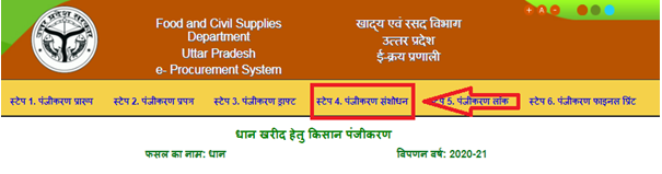 धान खरीद रजिस्ट्रेशन फॉर्म में संशोधन कैसे करें