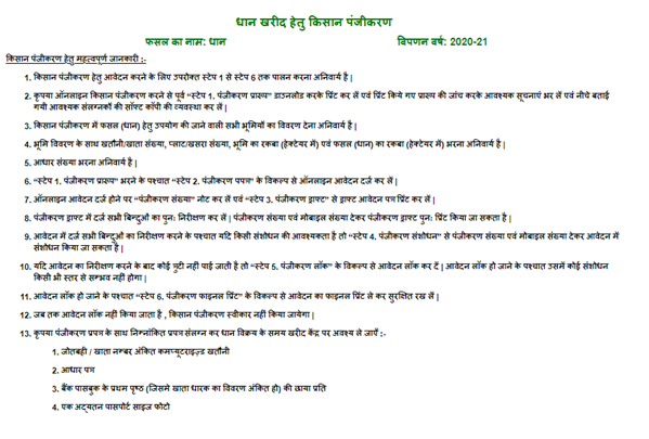 - होम पेज पर धान खरीद हेतु किसान पंजीकरण से सम्बंधित कुछ महत्वपूर्ण जानकारियां दी होंगी, जिन्हें आपको पढ़ कर समझना है |