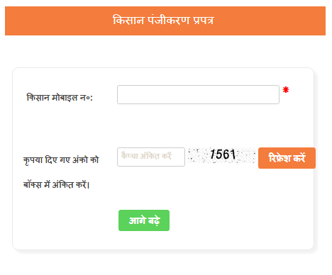 - यहाँ पर कृषक को अपना मोबाइल नंबर कैप्चा कोड भरकर आगे बढ़े पर क्लिक करना होगा |