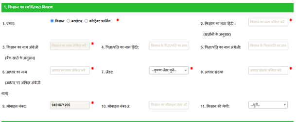 - अब आपके सामनें किसान पंजीकरण फार्म ओपन होगा,जिसमें सबसे पहले किसान से सम्बंधित व्यक्तिगत विवरण भरना होगा |