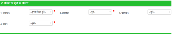 - दूसरे नंबर पर किसान की भूमि से सम्बंधित विवरण भरना होगा |