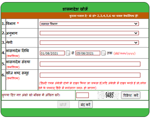 • अब आपके सामनें एक फॉर्म ओपन होगा, जिसमें पूछी गयी जानकारी जैसे- विभाग, शासनादेश संख्या और कैप्चा कोड दर्ज कर खोजें के बटन पर क्लिक करना है।