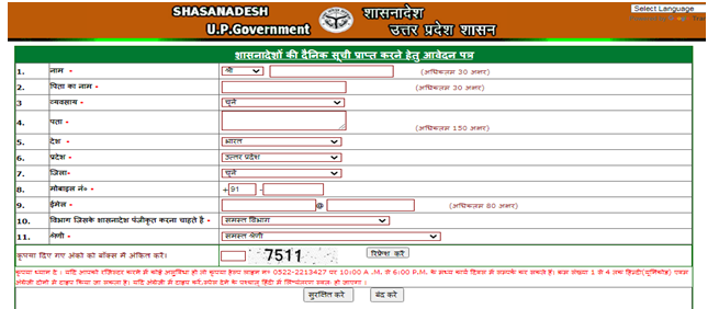 • अब आपके सामनें एक फॉर्म ओपन होगा, जिसमें पूछी गयी जानकारी जैसे- नाम, पिता का नाम, व्यवसाय पता, विभाग का नाम जिसमे शासनादेश पंजीकरण, कैप्चा कोड भरनें के बाद सुरक्षित करे पर क्लिक कर देना है।