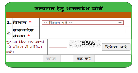 • होम पेज पर आपको नीचे ‘शासनादेश सत्यापित करे’ के ऑप्शन पर क्लिक करे |