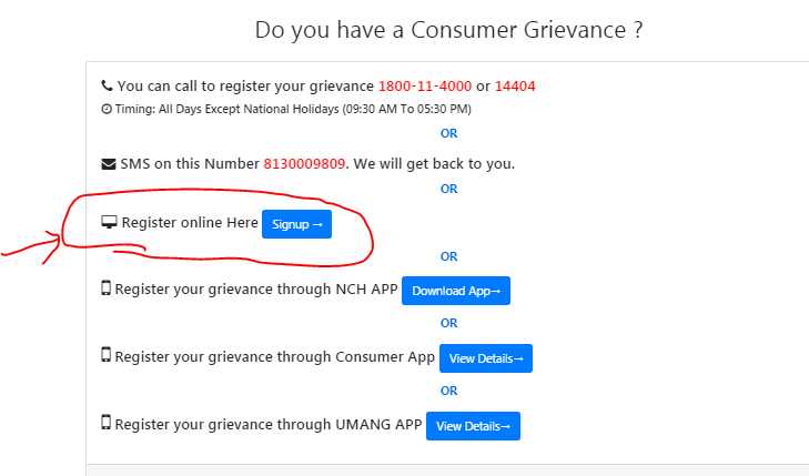 - आप ऑनलाइन राष्ट्रीय उपभोक्ता हेल्पलाइन (एनसीएच) के माध्यम से भी शिकायत दर्ज़ करा सकते है (नीचे जानिये विस्तार से) |